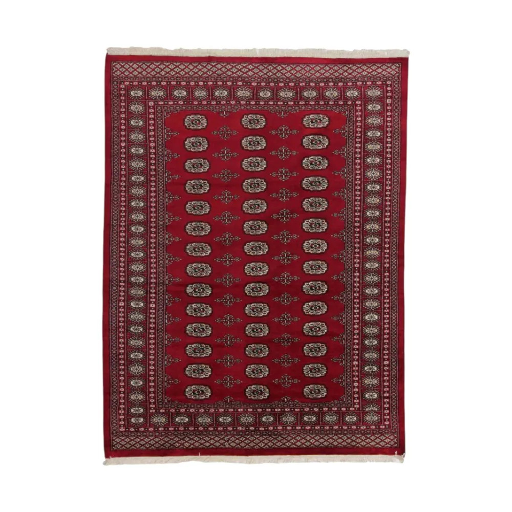 Dywan pakistański produkowany jest w prowincjach Pendżab i Sindh. Odzwierciedlając wielowiekową tradycję, ten dywan orientalny jest hołdem dla rzemiosła i kunsztu rzemieślników. Dywany pakistańskie są znane na całym świecie ze swojej jakości i bogatego dziedzictwa kulturowego Pakistanu. Wzornictwo i techniki produkcji tego dywanu orientalnego pochodzą od Turkmenów, którzy handlowali nimi na starym rynku dywanów w słynnym mieście Buchara. Jeden z najsłynniejszych wzorów (Buchara) wziął swoją nazwę właśnie stąd i od tamtej pory jest cechą charakterystyczną tych pięknych dywanów orientalnych. Dywany pakistańskie wykonane są z wełny merynosów nowozelandzkich, która zapewnia wyjątkową jakość i trwałość. Dzięki gęstemu wiązaniu węzłów są one trwałe i odporne na zużycie w codziennym użytkowaniu. Ten elegancki dywan jest obecnie uważany za jeden z najlepszych dywanów wełnianych w Pakistanie. Po wyprodukowaniu i strzyżeniu dywan jest czterokrotnie prany, a następnie starannie suszony, aby zachować żywe kolory i trwałość barw. Dzięki geometrycznym wzorom i eleganckim kolorom, dywany te dodają wyjątkowej atmosfery w domu, niezależnie od tego, czy jest to dywan do salonu, który podkreśli elegancję pomieszczenia, czy dywan do sypialni, który doda komfortu i miękkości Twoim krokom. Idealnym wyborem do przedpokoju są także pakistańskie chodniki dywanowe. Jeśli szukasz wyjątkowego dywanu orientalnego, który jest wykonany z wysokiej jakości materiału i prezentuje artystyczny kunszt, wełniane dywany pakistańskie są idealnym wyborem. Harmonijne połączenie wyrafinowanych wzorów i żywych kolorów stworzy magiczną atmosferę w każdej części pomieszczenia. Dywan pakistański jest nie tylko estetyczny, ale również niezwykle praktyczny. Jego gęsto pleciona powierzchnia jest trwała i odporna, dzięki czemu pozostaje w pięknym stanie przez wiele lat. Ponadto, naturalne właściwości wełny pozwalają jej izolować podłogę, nadając jej doskonałe właściwości termoizolacyjne. Dywany pakistańskie dostępne są w szerokiej gamie rozmiarów i kształtów, dzięki czemu każdy może znaleźć najlepszy dla swojego domu.