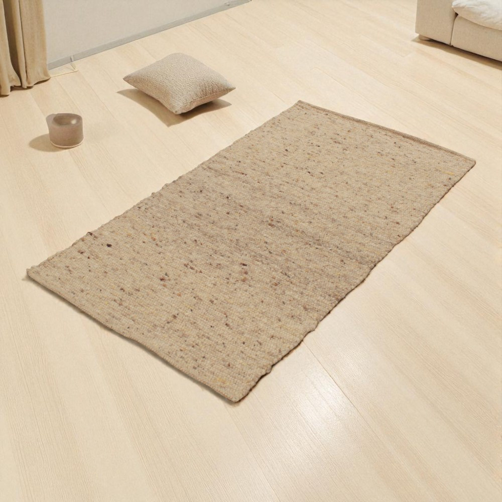 Wykonany w 100% z naturalnej wełny nowozelandzkiej, dywan nie zawiera alergenów i jest bezpieczny dla alergików. Nowoczesny dywan wełniany, taki jak ten, to doskonały sposób na stworzenie ciepłej, przytulnej atmosfery w domu, z nutą eleganckiego, rustykalnego charakteru. Dzięki możliwości użytkowania obustronnego, gruby dywan wełniany jest trwałym i zrównoważonym wyborem na lata. Naturalny dywan wełniany można odkurzać od razu po rozłożeniu, a jego czyszczenie jest wyjątkowo łatwe. Większe zabrudzenia można usunąć przy użyciu specjalnej pianki przeznaczonej do czyszczenia dywanów wełnianych.